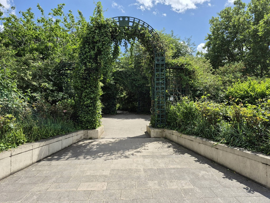 Nachdem ich am 1. Mai vergeblich am Eingang zur Grünanlage "Culée verte" auf der ehemaligen Bahntrasse stand (am Feiertag geschlossen), klappte es bei bestem Wetter 2 Tage später sehr gut. Ich war total begeistert! Der Weg führt über einen vielfältig bepflanzten Viadukt mit 71 Bögen. Zwischendurch gibt es kleine Wasserbecken und immer wieder tollte Ausblicke über die Dächer und auf die unter einem liegenden Straßen.