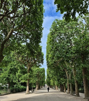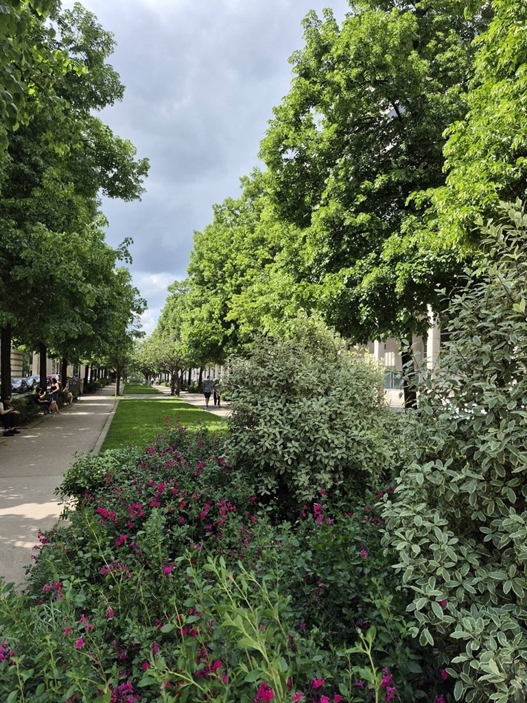 Im Park war es etwas besser. Aber der 8. Mai ist ein französischer Feiertag und so flanierten ganze Familienverbände durch die Parkanlagen. Mein Bein schmerzte und nach einer kleinen Runde gab ich resigniert auf.