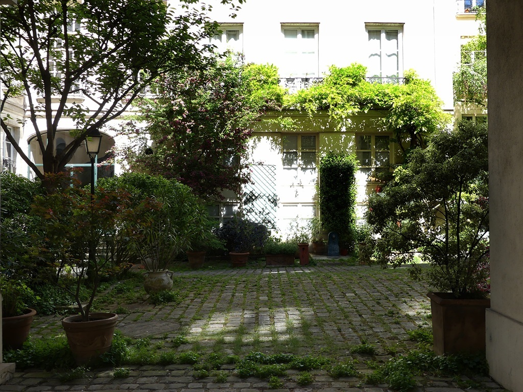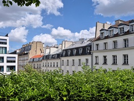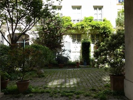 Ich schlenderte durch die Passagen des "Village Saint-Paul" und legte eine Rast unter einem schattenspendenden Baum im Hof des l'Hôtel de Sully ein. Über kleine Straßen kam ich in den Hof des Nationalarchivs. Das Ensemble wird von den Palästen "Hôtel de Soubise" und dem "Hôtel de Rohan" eingefasst. Etwas versteckt liegt der idyllische Garten - ein ruhiges Fleckchen Grün mitten in Paris.