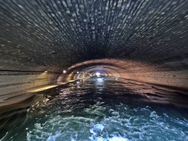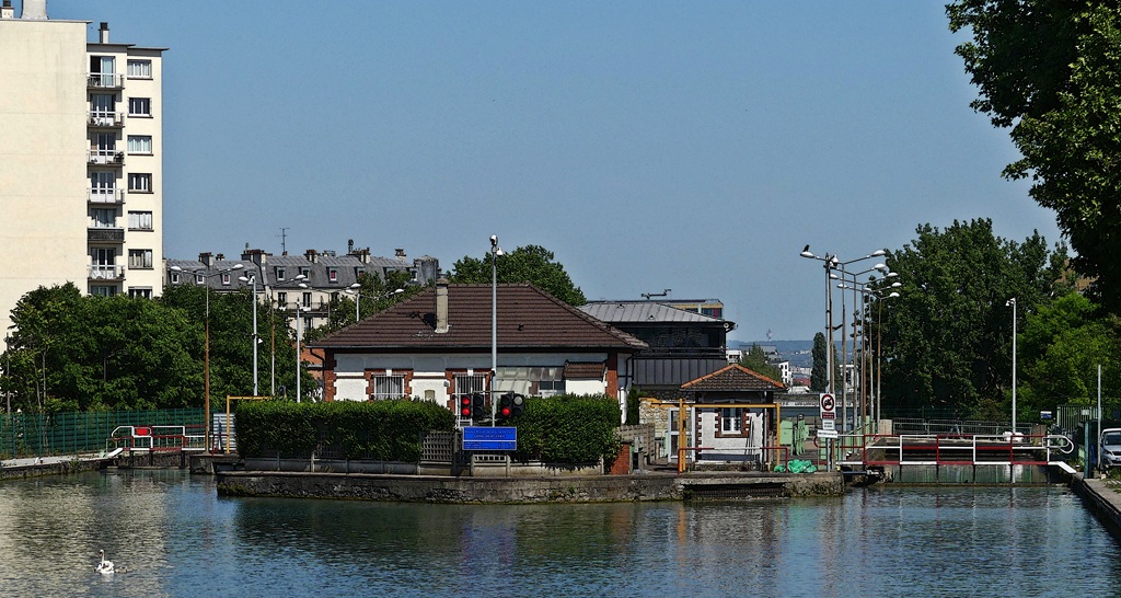Die Kanalfahrt war nach einigem Hin & Her mit dem Reservierungsbüro auf Sonntagmorgen verschoben worden und so fand ich mich pünktlich am "Port d'Arsenal" ein. Mit ausführlichen Erläuterungen zum Kanal, zu den Gebäuden rechts und links des Ufers in Französisch und Englisch schipperten wir zunächst unter der Abdeckung zwischen den beiden Straßenzügen des Boulevard Richard-Lenoir her. Dann ging es bei tollem Wetter aber oberirdisch weiter. Wir durchfuhren 5 Schleusen, passierten 2 Drehbrücken. Überall standen winkende Menschen auf den Brücken und an den Ufern. Wir kreuzten das "Bassin de Villette" und fuhren noch ein Stück auf dem "Canal de l’Ourcq" bis kurz vor den "Boulevard Périphérique". Am Kai des Bootstourenunternehmens stiegen wir aus.