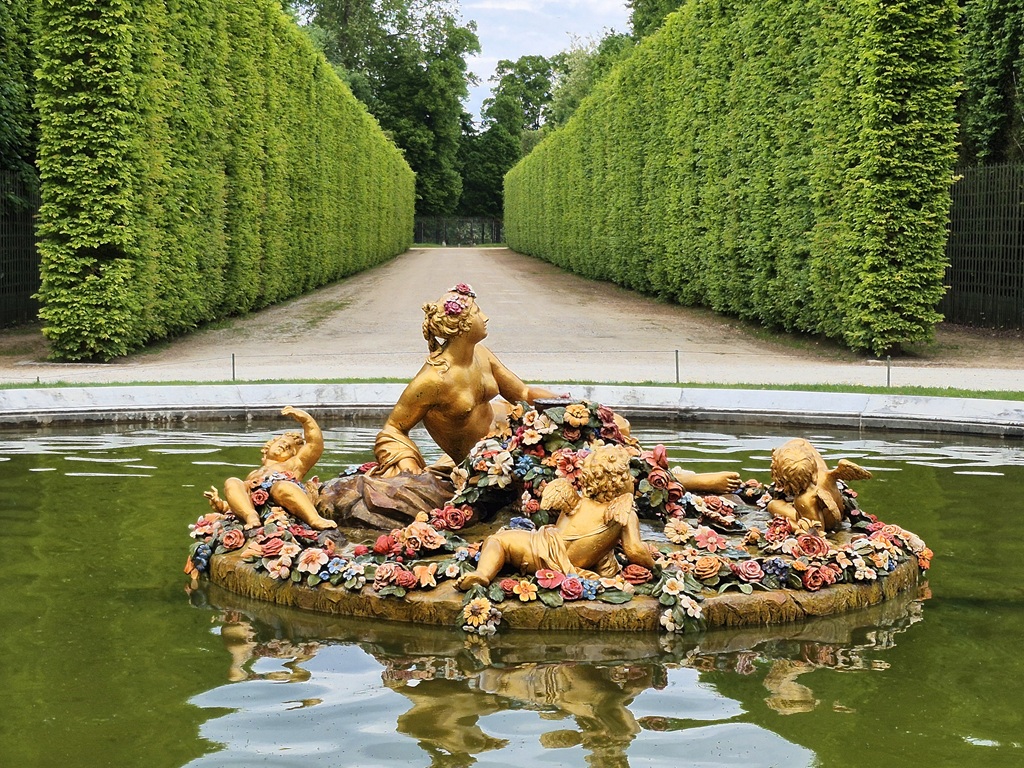 Als junge Frau besuchte ich mit Freunden Versailles. Damals war ich ganz entzückt. Das wollte ich mir nochmal ansehen. Ich hatte ein Ticket mit einem Einlass um 14:30 Uhr gebucht. Mit dem RER kam ich am Bahnhof "Versailles-Chantiers" an. Zu Fuß bis zum Schloss waren es nur 20'; ich zog mir allerdings unterwegs eine Zerrung im Oberschenkel zu und so dauerte alles etwas länger. Aber aufgeben wollte ich nicht.