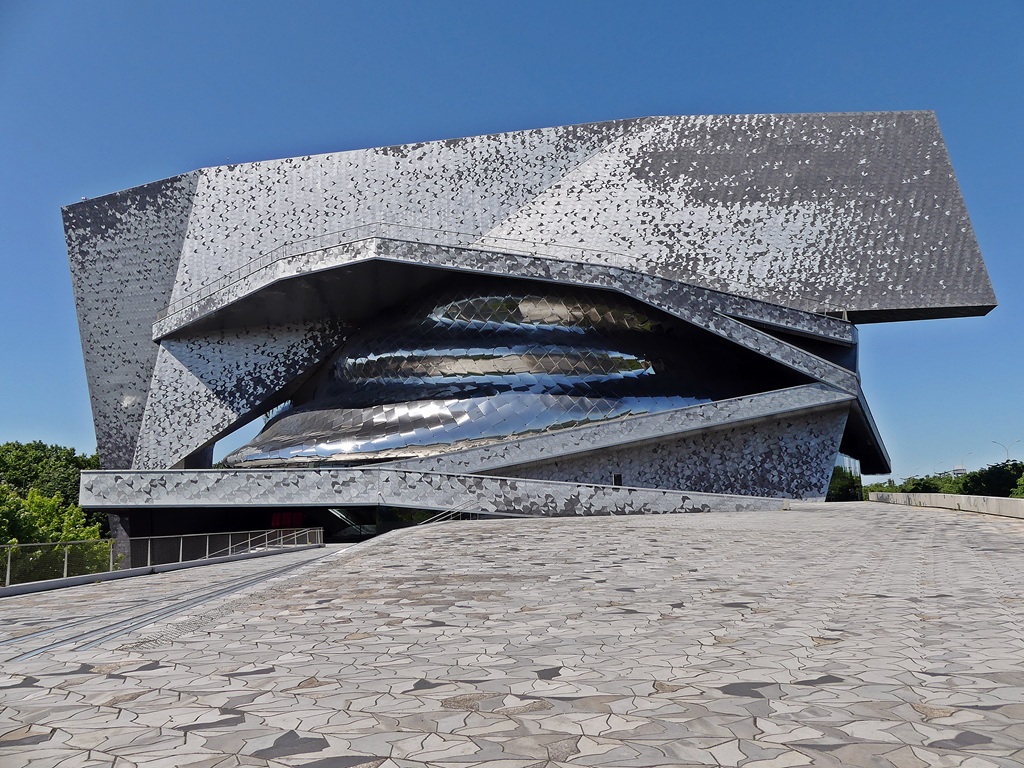 Ich schlenderte entlang des Kanals, wechselte die Seite und guckte mir kurz das Wissenschaftsmuseum "Cité des sciences et de l’industrie" an und schoss ein paar Fotos vom kugelrunden, schimmernden Kino "La Géode". Weiter durch den "Parc de Villette" kam ich zum wirklich spektakulären Gebäude der Pariser Philharmonie; ein dekonstruktivistischer Bau mit einer blitzenden Fassade, die aus 340.000 stilisierten Vögeln aus Aluminium besteht (Architekt: Jean Nouvel).