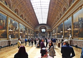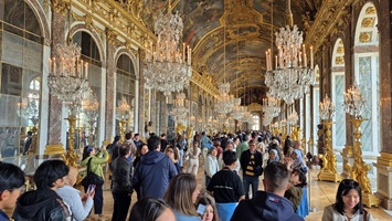 Vor dem Schloss gab es 3 Warteschlangen von ungefähr 50 -70 Metern und die Einlasszeiten hatten sich stark verzögert. Dann ging es plötzlich schnell und nach der Taschenkontrolle knubbelten sich die Menschen in den Gängen entlang der Ausstellungssäle. Es ging an endlosen Galerien zu Kreuzzügen, Schlachten, Bildern von Königen, Fürsten und Generälen vorbei. Stehenbleiben war unmöglich - es war ein Gedränge und Geschiebe, dass mir fast die Luft wegblieb.