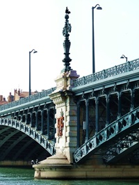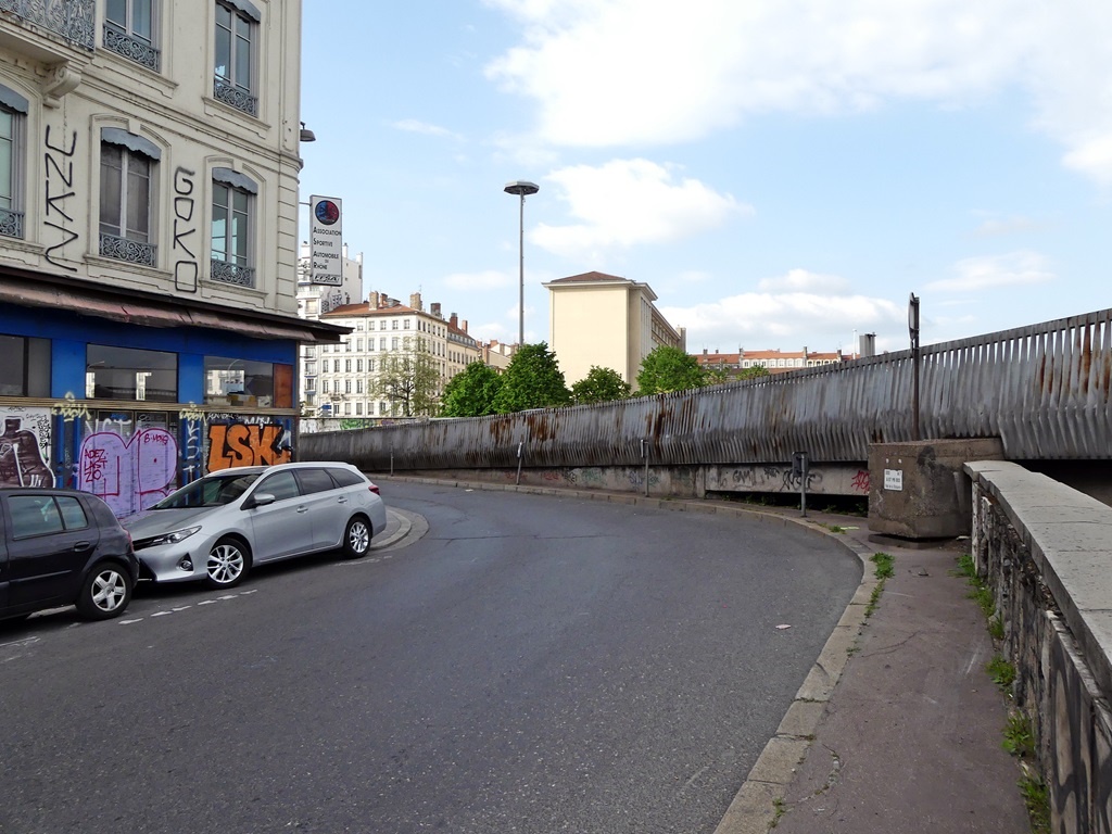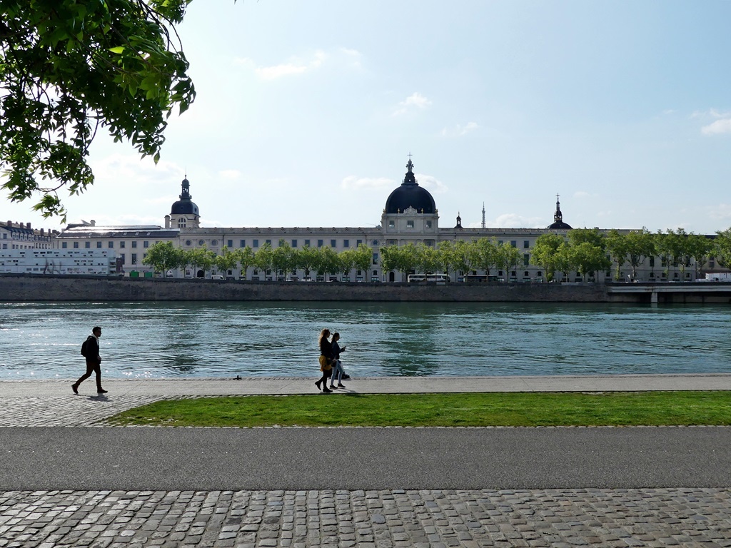 Ein gut ausgebauter Weg/ Holzsteg führt direkt am Fluss entlang, vorbei an Gebäuden der Uni, einem Krankenhaus und der Anlegestelle für die Flusskreuzfahrtschiffe. Ich genoss die schönen Ausblicke auf die Häuser an der gegenüberliegenden Seite der Rhône. Über die "Pont Gallieni" steuerte ich direkt auf den Bahnhof "Perrache" zu, wurschtelte mich unter "bewohnten" Fußgängerunterführungen zur 90° Kurve der Autobahn durch und kam ziemlich kaputt im Hotel an. Der Abend war mit Packen und Sichten der Fotos schnell um. Am nächsten Tag, der 1. Mai, ging es weiter gen Süden.
