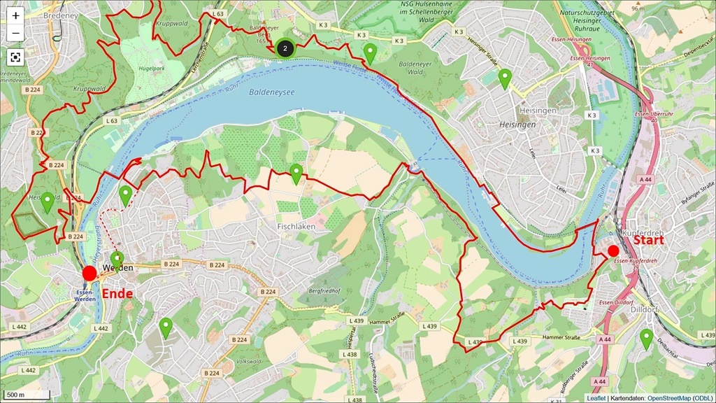 von Kupferdreh nach Kettwig: der Baldeneysteig