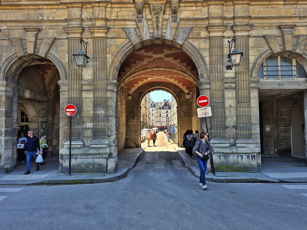 Über breite, baumbestandene Boulevards, durch schmale Gassen, vorbei an Palästen und Kirchen erkundete ich den quirligen Stadtteil. Obwohl auf der "Place des Vosges" viele Touristen drängelten und etliche junge Menschen gemütlich auf dem Rasen lagerten bekam ich einen guten Eindruck von der Anlage.