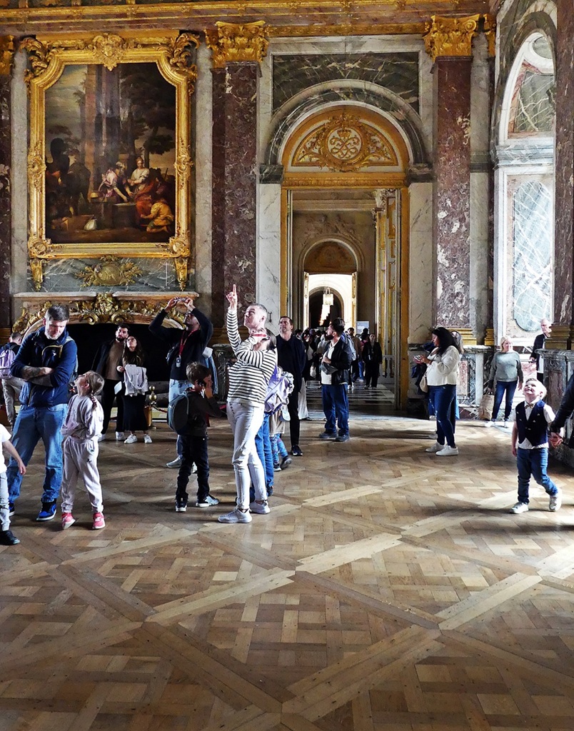 Als junge Frau besuchte ich mit Freunden Versailles. Damals war ich ganz entzückt. Das wollte ich mir nochmal ansehen. Ich hatte ein Ticket mit einem Einlass um 14:30 Uhr gebucht. Mit dem RER kam ich am Bahnhof "Versailles-Chantiers" an. Zu Fuß bis zum Schloss waren es nur 20'; ich zog mir allerdings unterwegs eine Zerrung im Oberschenkel zu und so dauerte alles etwas länger. Aber aufgeben wollte ich nicht.