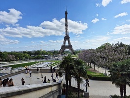 Von der Bushaltestelle direkt vor der Tür des Hotels fuhr ich quer durch die Stadt bis zum Eiffelturm, der rundherum gut eingezäunt ist. Über die Seine spazierte ich durch die Gartenanlagen zum "Trocadéro" mit dem spektakulären Blick auf den Turm.