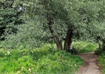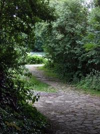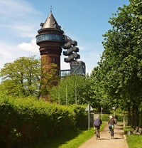 Über eine ehemalige Bahntrasse neben dem riesigen Trinkwassergewinnungsgebiet und mit einem kleinen Streifzug durch den MÜGA-Park erreicht man Schloss Broich und die Mülheimer Innenstadt.
