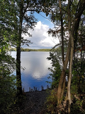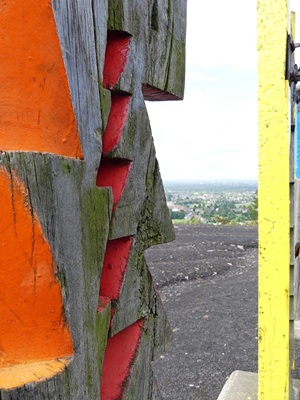 Mit Straßenbahn und Bus ging es zur Halde Haniel; Treffpunkt mit der Freundin war der Parkplatz. Von dort aus ging es gemütlich bei sonnigem Wetter entlang der einzelnen Kreuzwegstationen und dem 1987 - anlässlich des Papstbesuchs - aufgestellten Kreuz bis zu den inzwischen wieder restaurierten/ergänzten Totems von Agustín Ibarrola. Die Aussicht war nicht so berauschend und rechtzeitig, bevor ein kräftiger Schauer runterkam, waren wir am Parkplatz. Nach einer kurzen Stärkung wanderten wir noch eine kleine Runde am Heidesee vorbei. Und wieder hatten wir Glück: danach schüttete es wieder wie aus Eimern. Meine Freundin brachte mich am Bahnhof Bottrop vorbei; von dort aus gelangte ich bequem nach Hause.
