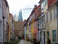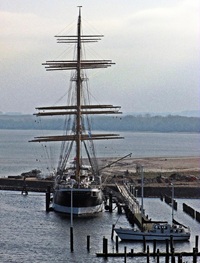 Die Umgebung ließ sich gut erwandern: immer am Stand lang oder einmal die Halbinsel umrunden. Aber auch zur Steilküste zwischen Travemünde und Niendorf konnte man gut laufen. Am Traveufer erforschte ich das alte Fischerdorf Gothmund und das Schutzgebiet Schellbruch. Und natürlich schipperte ich mit dem Boot nach Lübeck; zurück ging es mit dem Bus. Meist hatten wir sonniges allerdings doch recht frisches Wetter, so dass wir immer mit Mütze, Schal und Anorak unterwegs waren.